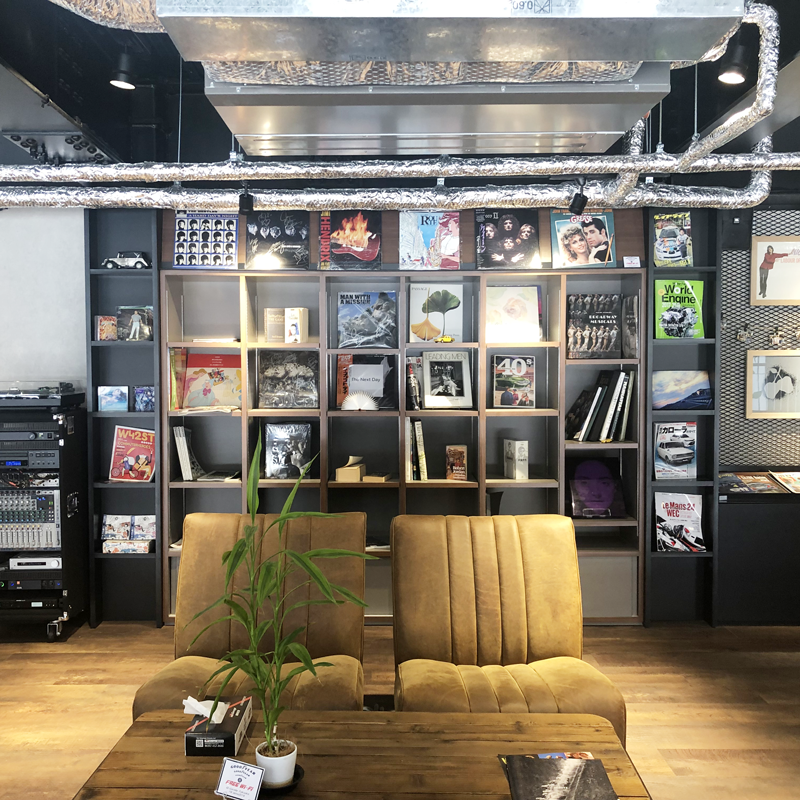 2階はカフェスペース兼ライブ仕様になっていて、雑誌を読んだりして待ち時間を楽しむことができます。今後は音楽イベントも計画されているそうです。