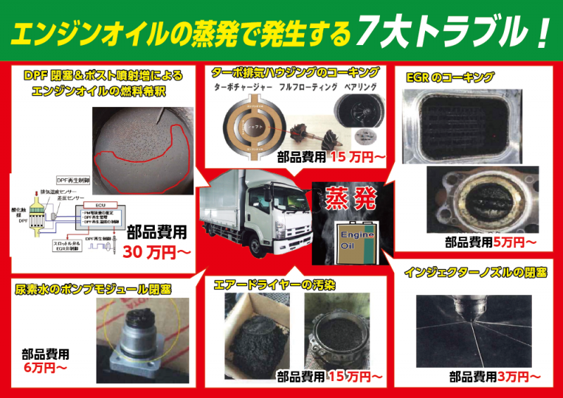 ※パッカー車は油量も少なく、PTO(パワーテイクオフ)を通してエンジンの回転を油圧に変えてゴミ取集の圧縮に利用する為、エンジンへの負荷が大きく、通常では5,000km毎のオイル交換でもトラブルが多発する状況です。