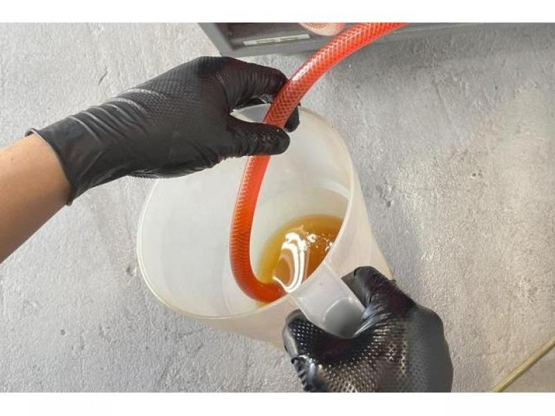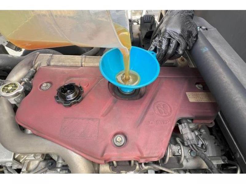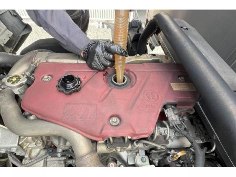 本日ご入庫のお車は日野デュトロ。中古で購入されたばかりの運送業者様から、「これから長く安心して使いたい」とのご相談をいただき、全オイル交換+SOD-1Plus添加を実施しました。