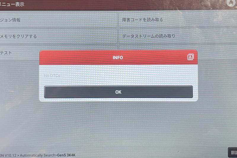 運行中にATモニターのスパナマーク点灯は確認されず、診断機にてエラーコードの検出もありませんでした。
