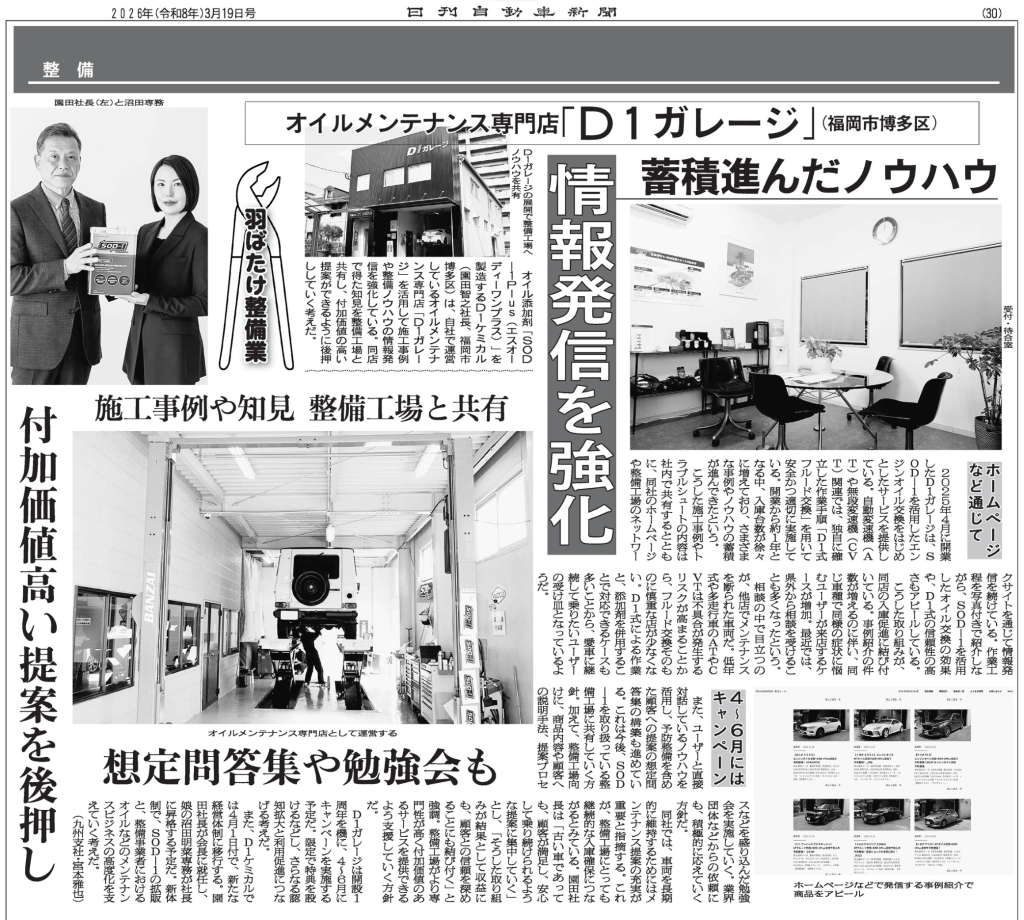 このたび、日刊自動車新聞(2026年3月19日号)特集「羽ばたけ整備業」にて、