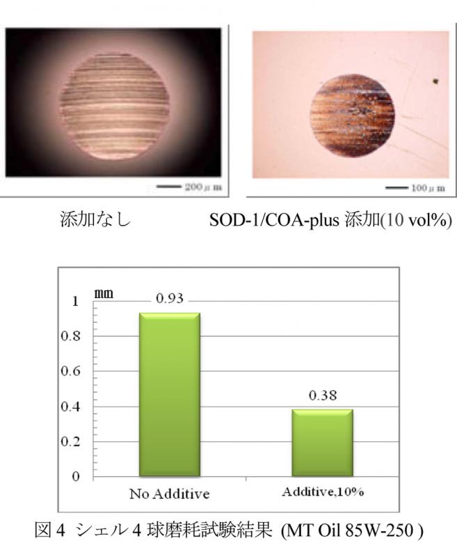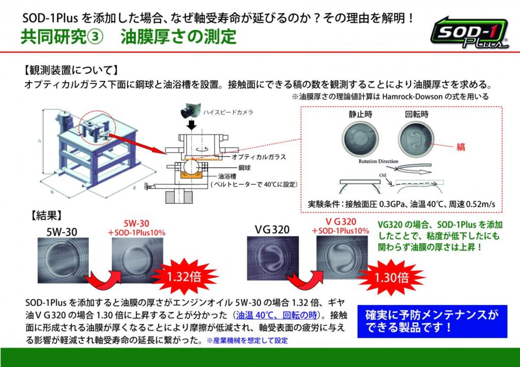 更にSOD-1Plusを添加することで、油膜の厚さが向上するという結果も出ており、トライボロジーの学者の方にもご興味を関心を持っていただいております。