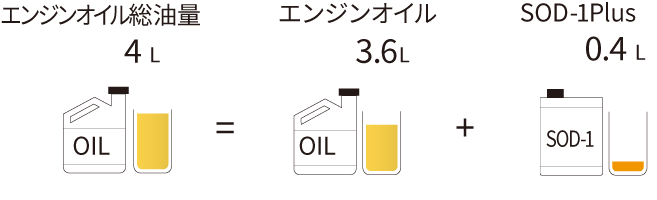 (例)エンジンオイルへ添加の場合(10%添加)