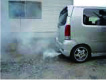 マフラーから白煙を吐くターボ装着車(タービンからのオイル漏れを含む)