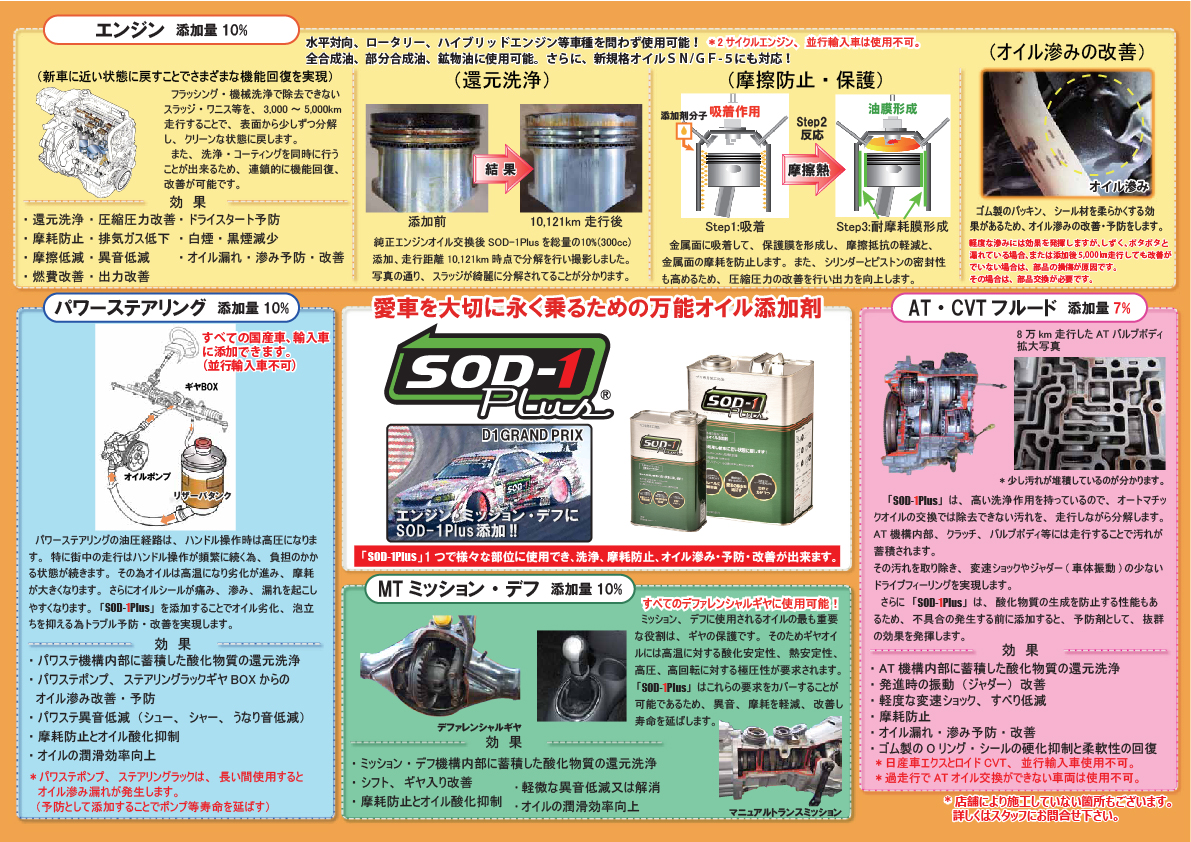 万能オイル添加剤「SOD-1Plus」の製品パンフレットです。